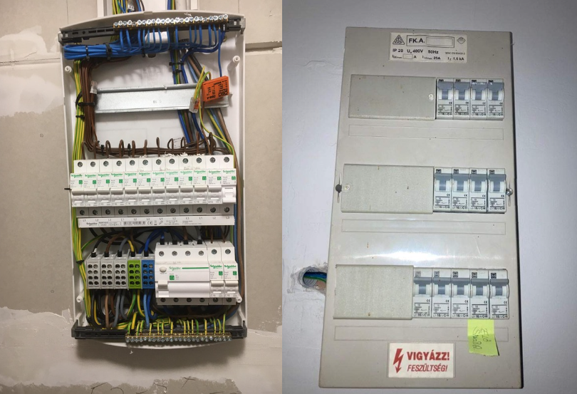 6) AC csatlakozási pont / lakáselosztó fotók (ajtó nyitva + opcionálisan fedél nélkül)