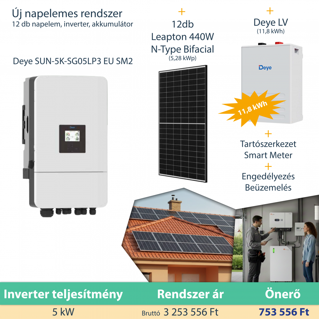 - 12 db Leapton 440 W N-Type bifacial napelem (összesen 5,28 kWp)